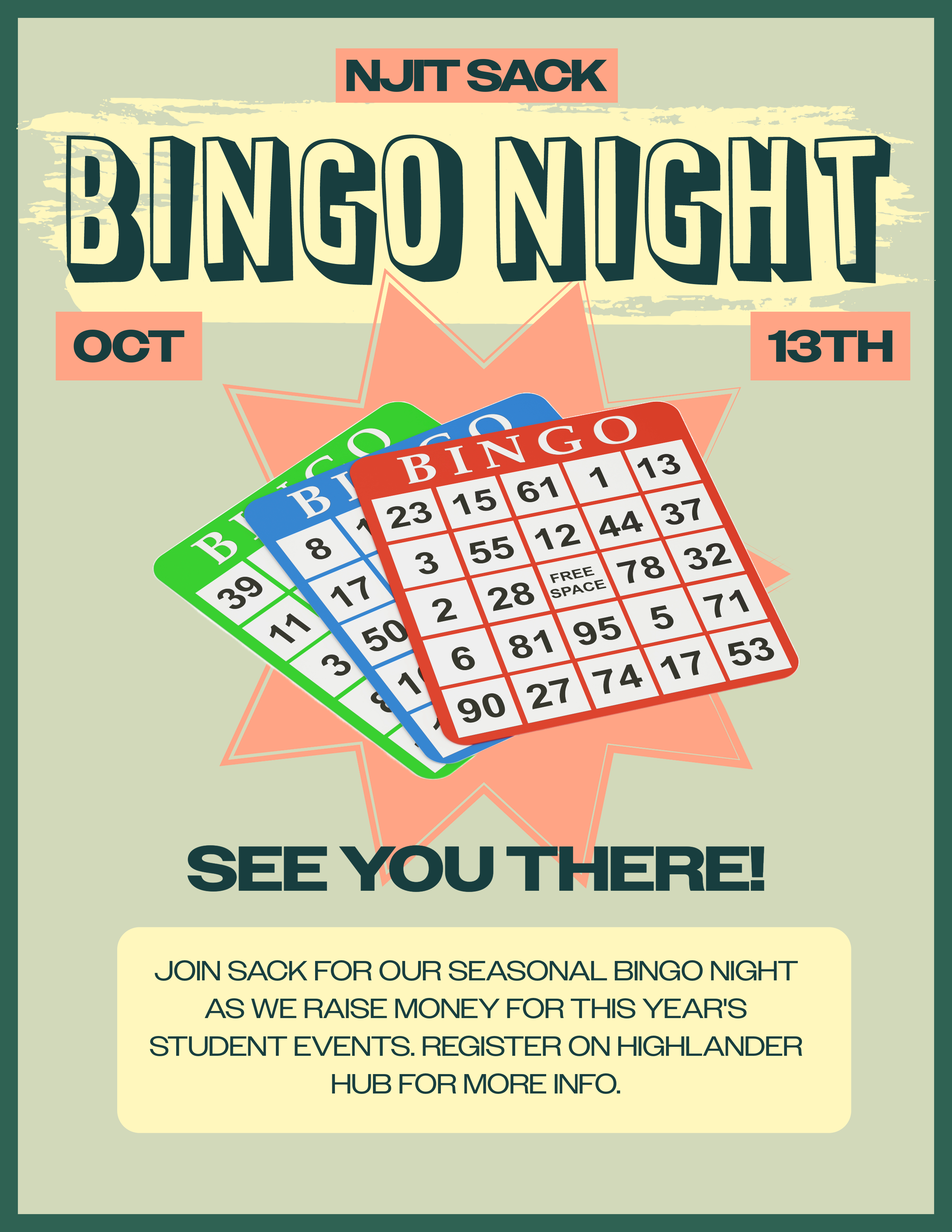 SACK is a riff on NJIT's Student Activity Council. Also this poster went from mostly visible to mostly hidden from Scenario 1 to Scenario 2, unlike the MUSA Bingo Poster.